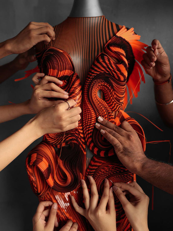 The three pillars of emotion, evolution and eternity form the bedrock on which our brand rests. Our kaarigars are our emotional core and a larger, personal connection with the wearer forms the very heart of the brand. To evolve is always looking at traditions as our spiritual core but contemporise this outlook for future generations. To be eternal is to derive strength from the natural wonders blooming around us—they reaffirm our faith in the art of creation.