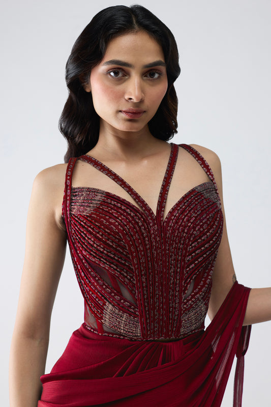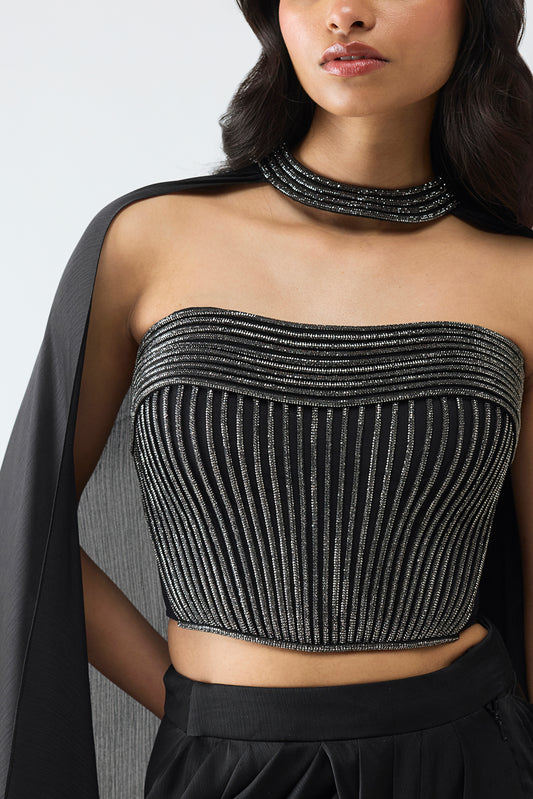 Crystalvein Bustier And Draped Skirt With Cape