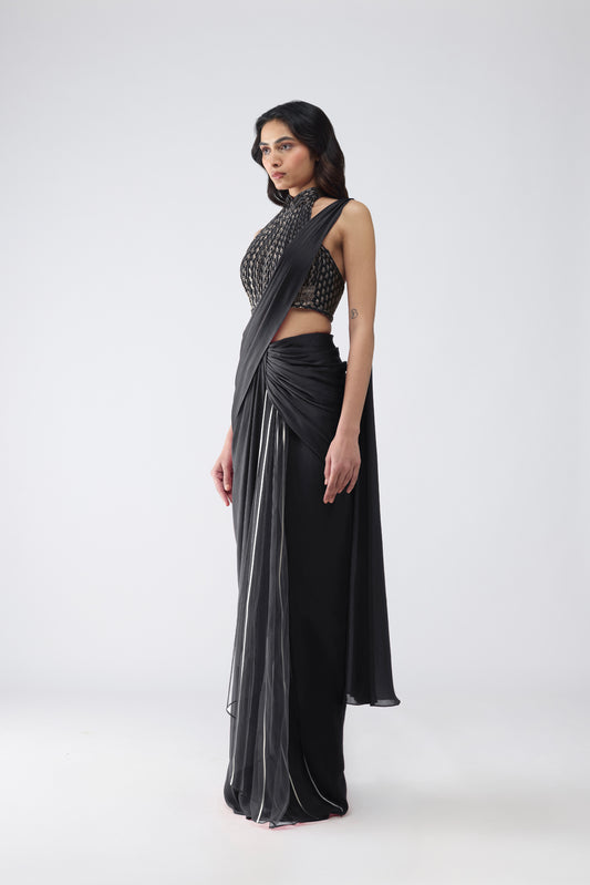 Vintage Banarsi Halter And Draped Saree