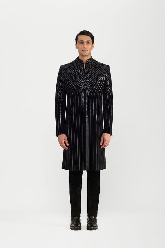 Metallic Tuxedo Set In Velvette With Cording And Glass Beads