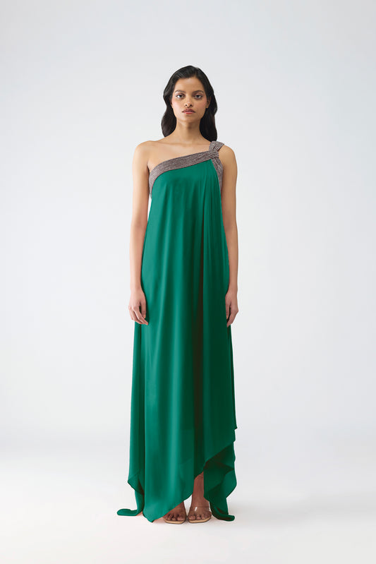 Banarsi Halter Dress With Sleeve Drape