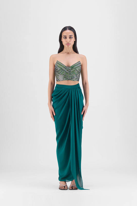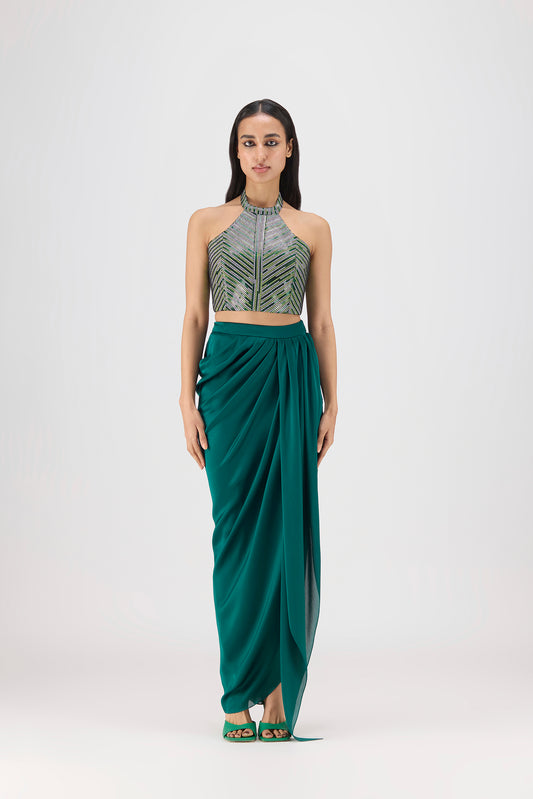 Micro Pleated Halter Top & Draped Skirt