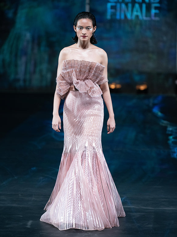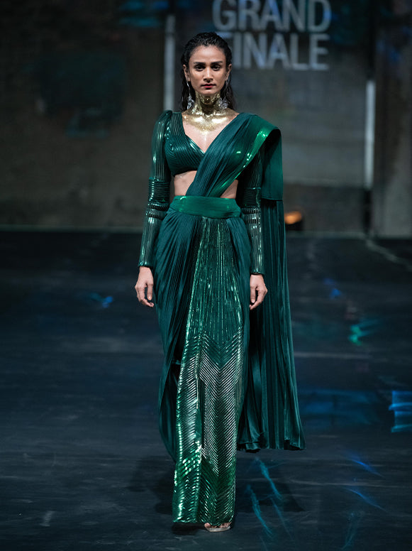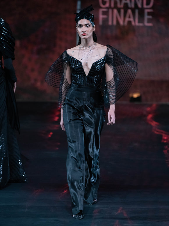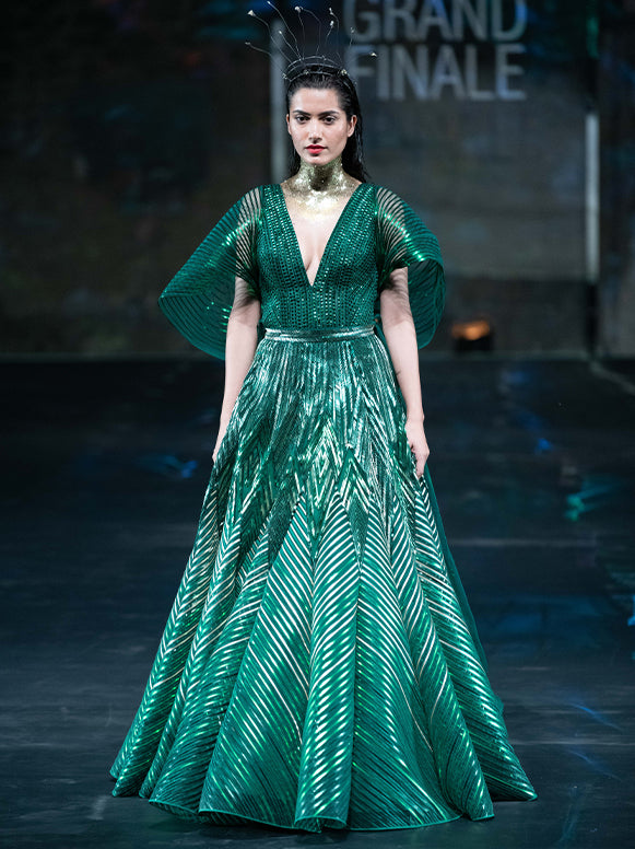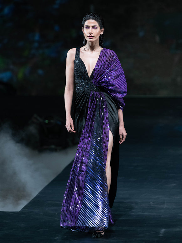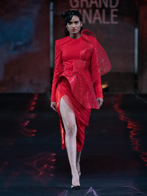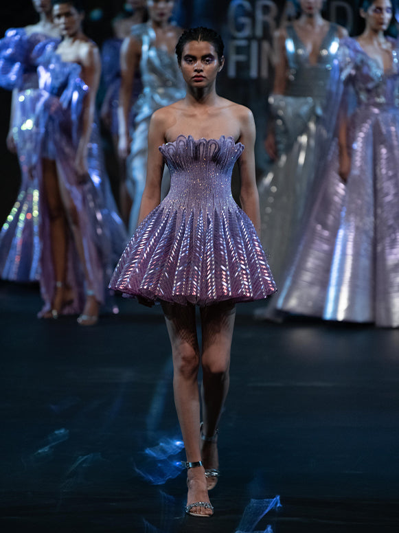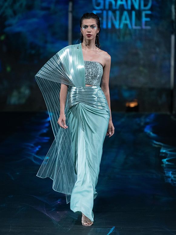 This collection is a step towards a future which we envision for human civilisation. For AXIL, we looked at the wildflower as a metaphor to represent femininity and how it conforms to a fabricated life made of concrete and polymers. All the pieces emanate the idea of a blooming flower thrown in industrial waste, and at the same time, mimic industrial aspects through hand-done techniques.