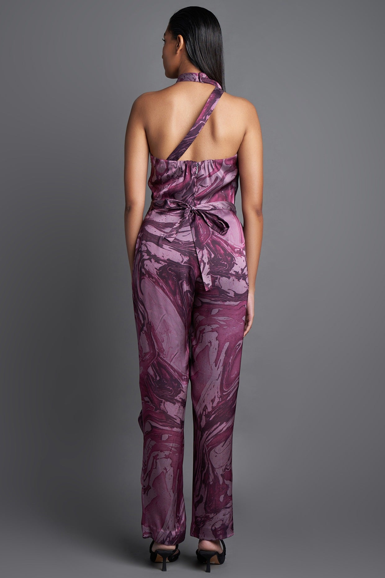 Asymmetrical Marbled Draped Jumpsuit