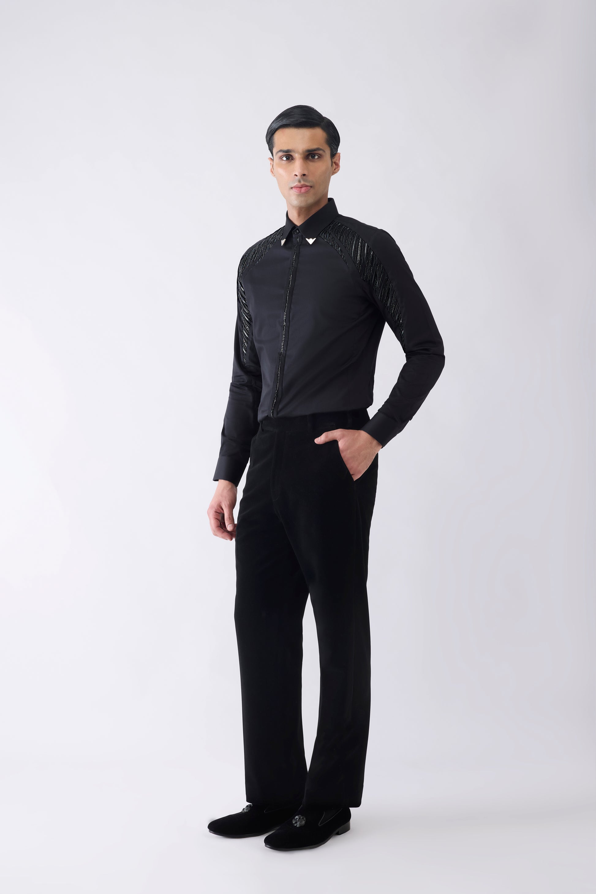 Engineered Metallic Shirt With Glass Beads