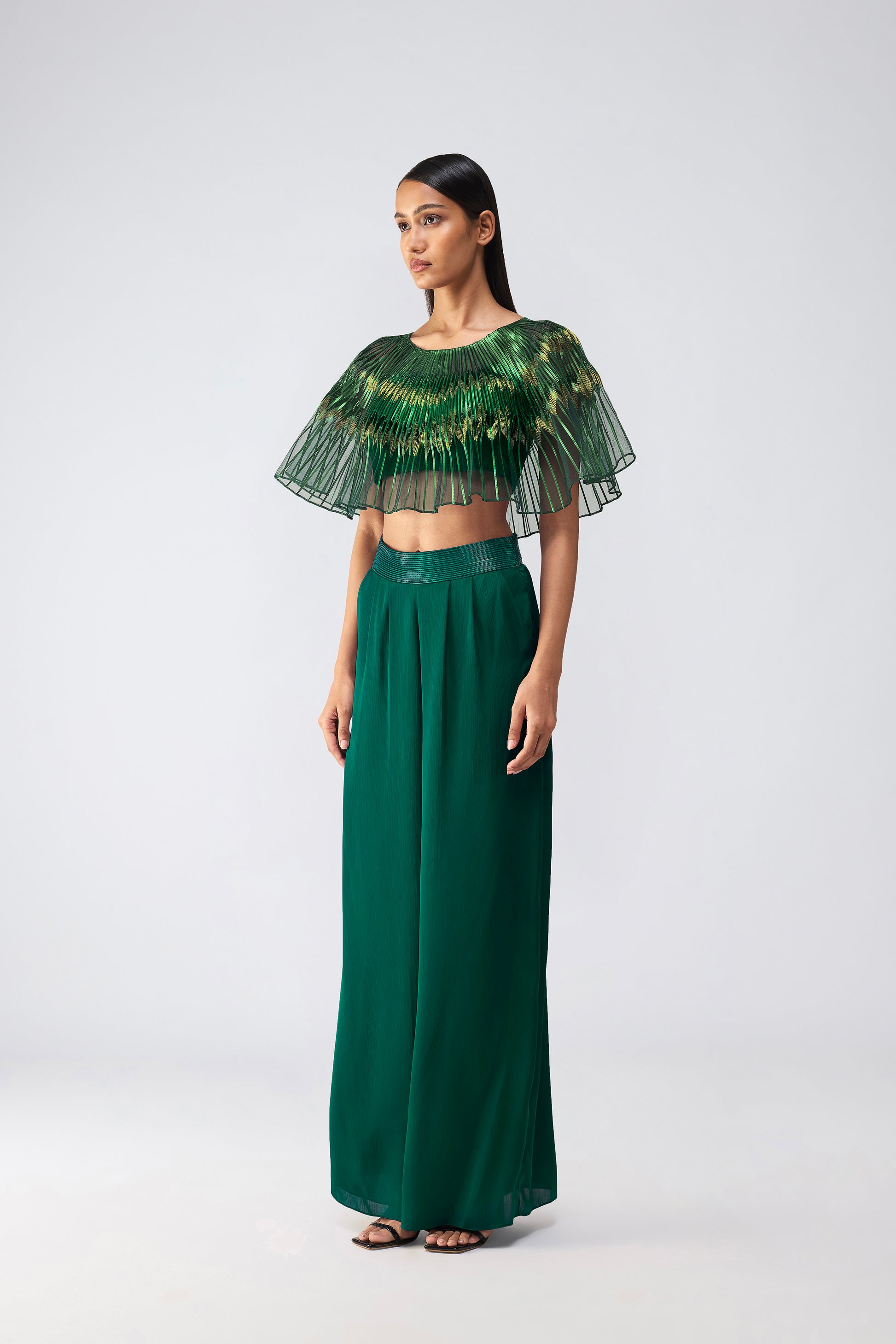 Pants: Fluid pants in Chiffon with cording and glass beads details on waist
