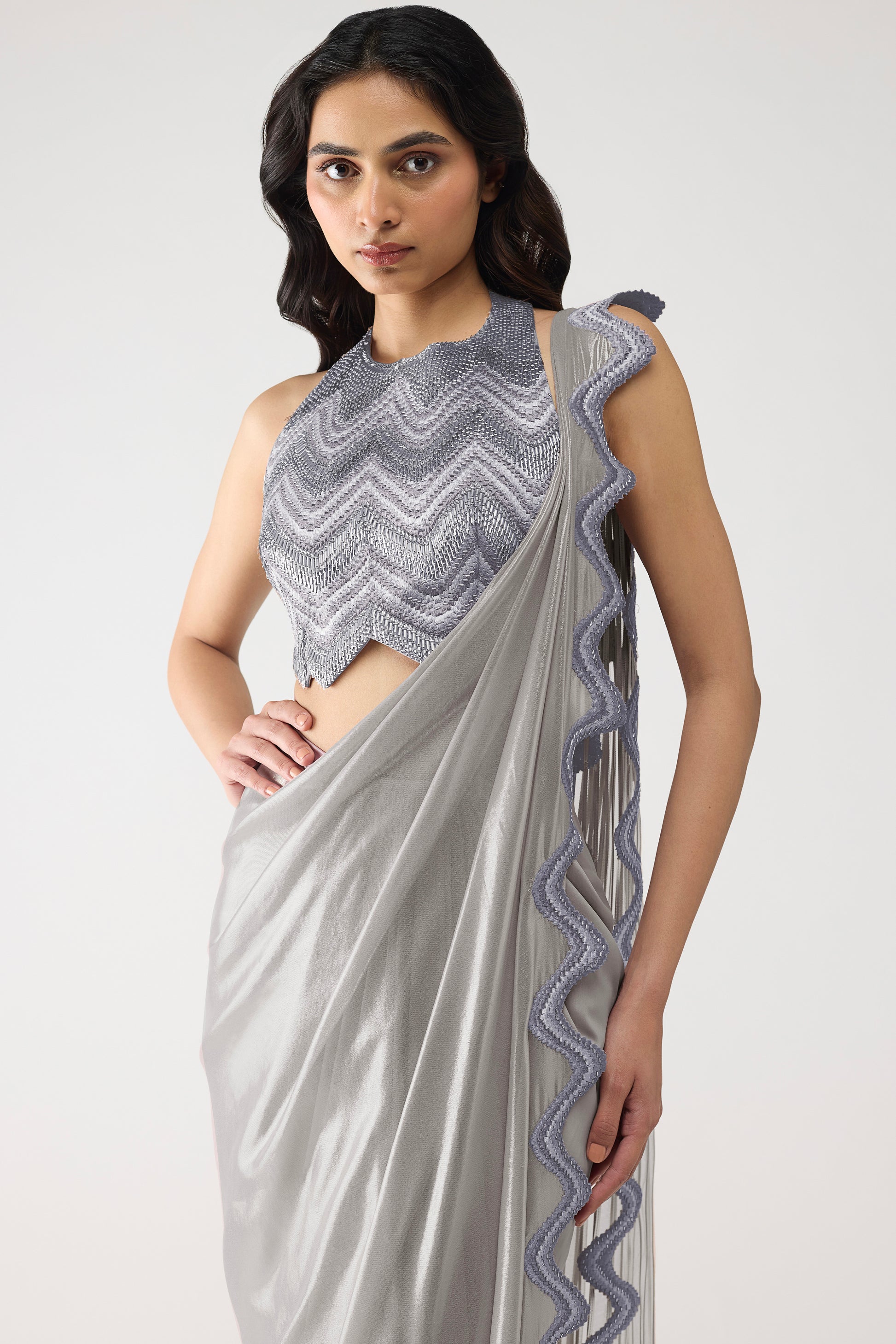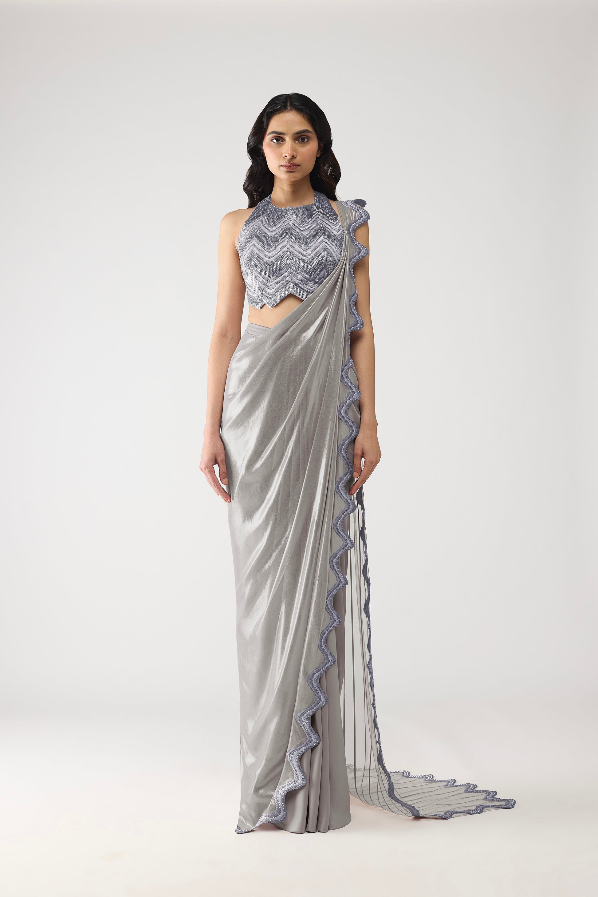 Metallic Scale Halter And Draped Saree