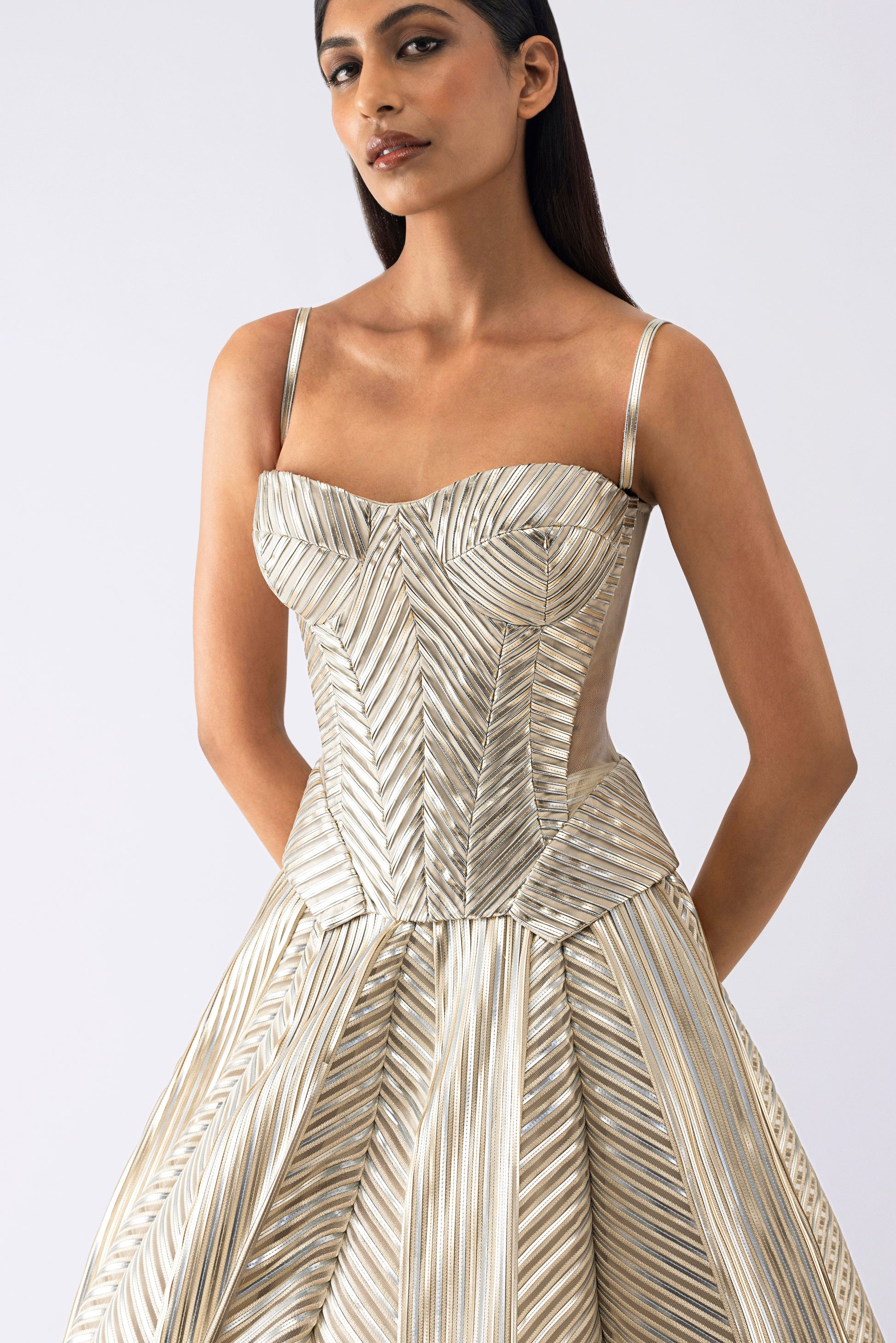 Metallic Structured Corset And Skirt