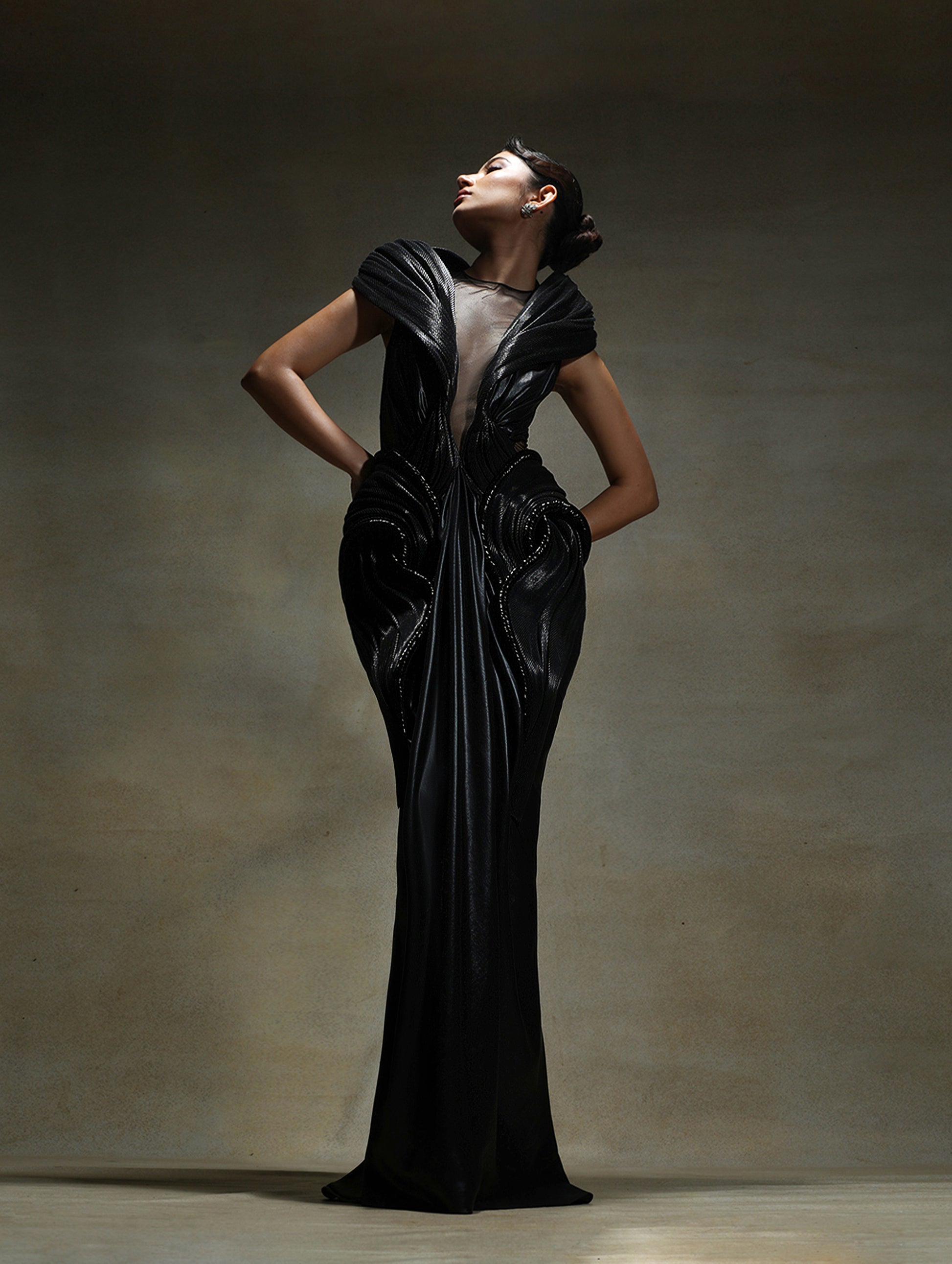 Each garment is meticulously handcrafted by artisans, making it unique. Slight variations in embroidery, structure, moulding, draping and colours are inherent characteristics of handmade garments. The details, including specifications, have been portrayed as precisely as possible.